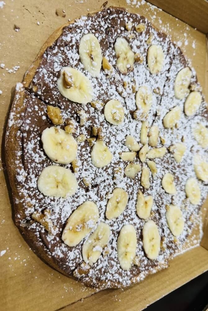 Nutella Base, Banana, Icing Sugar and Walnuts.