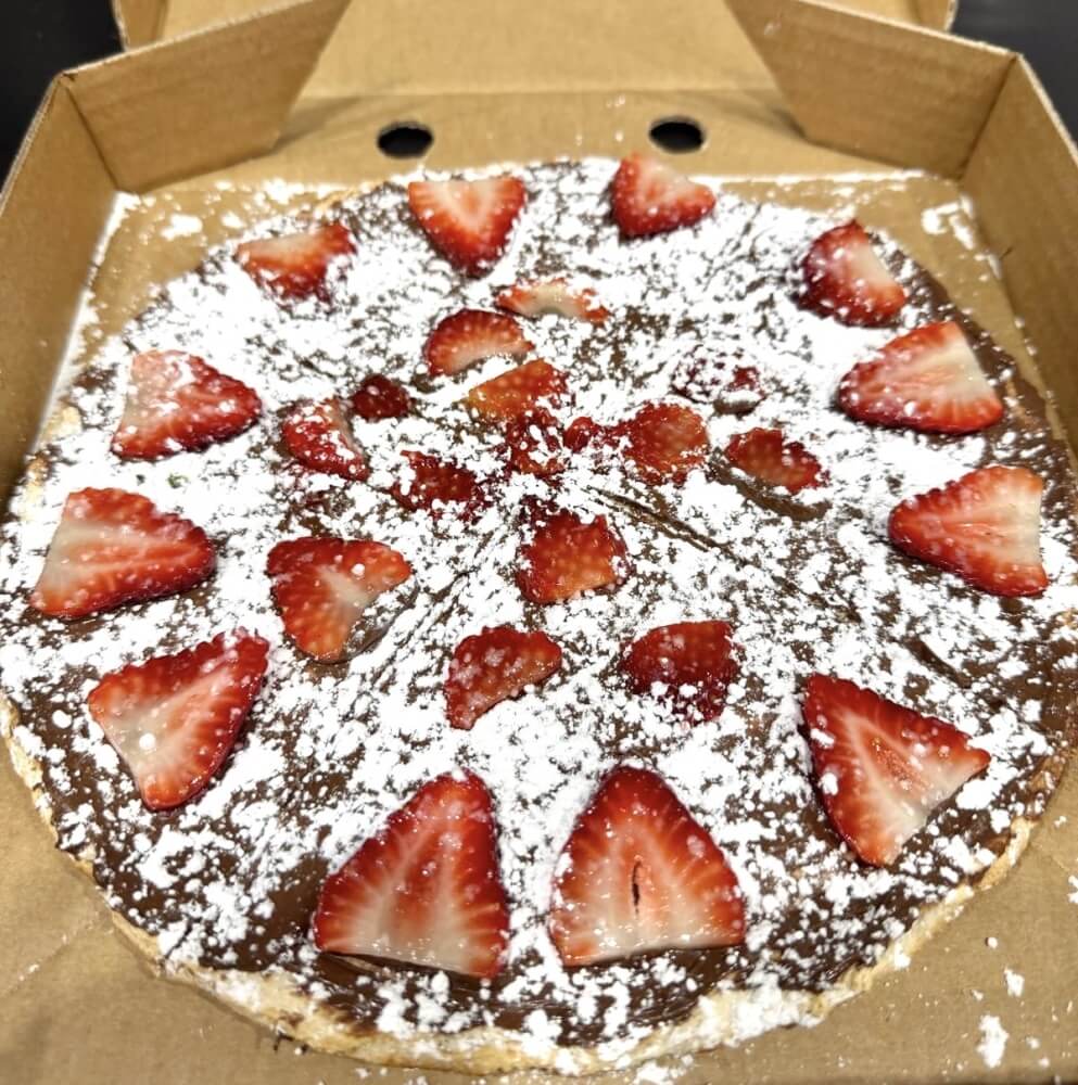 Nutella, sliced strawberries and a sprinkle of icing sugar.