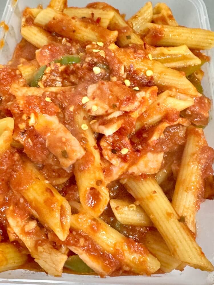Hot salami and bacon sauteed with capsicum, onion, olives, a sprinkle of garlic and chilli, with a Napoletana and cream blended sauce.