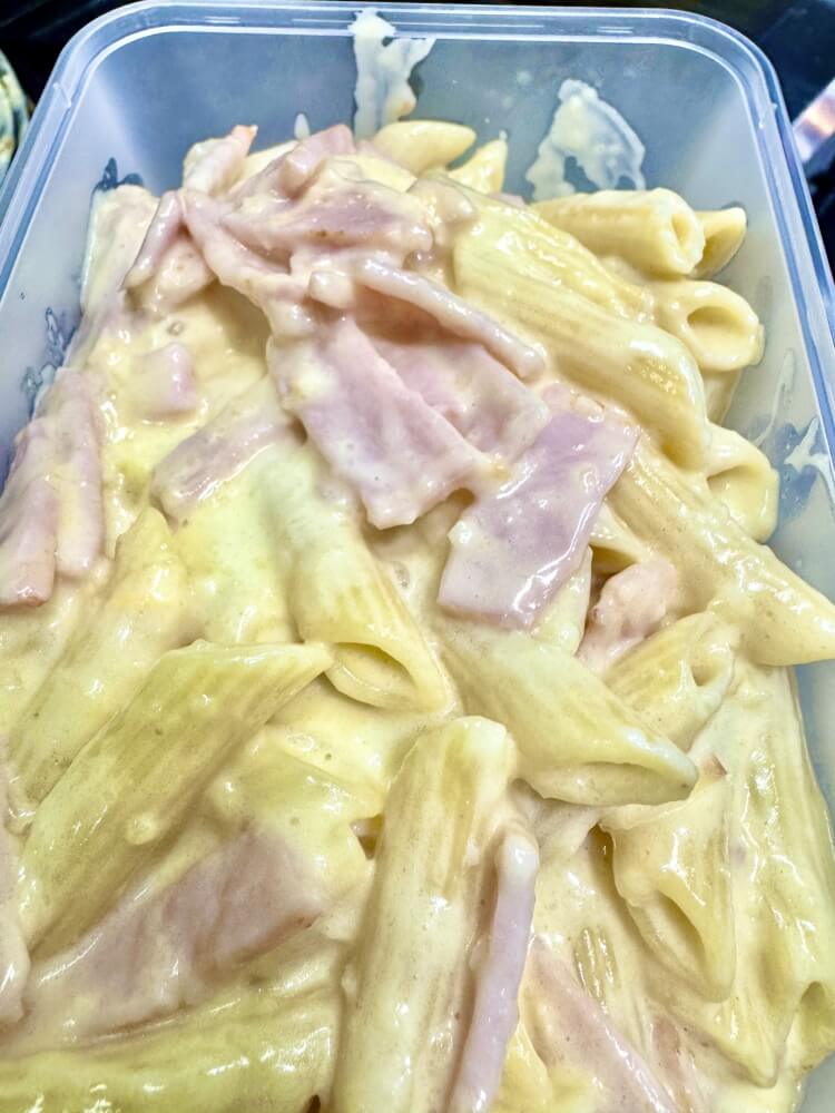 Diced bacon cooked until crispy with onion, garlic, herbs, simmered in a blend of cream, egg and parmesan cheese.